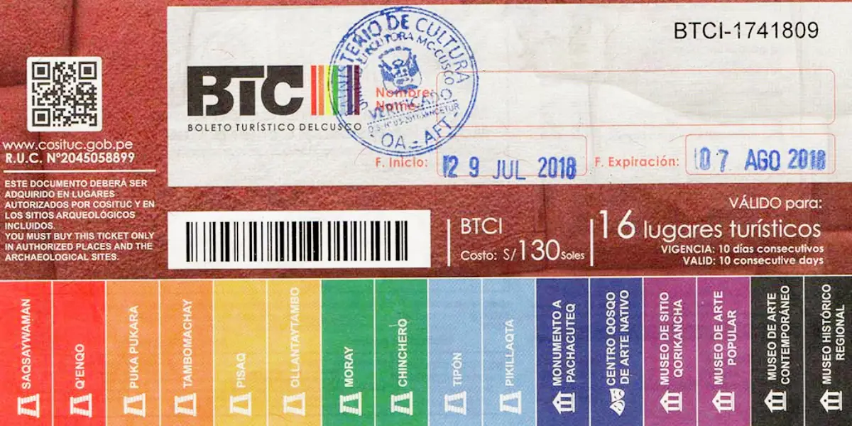 The Cusco Tourist Ticket (BTC) was created to make travelers’ lives easier by bundling multiple attractions into one pass, giving you access to a variety of destinations with a single document. This colorful, personal, and non-transferable ticket has a limited validity, so be mindful of the expiration date!
